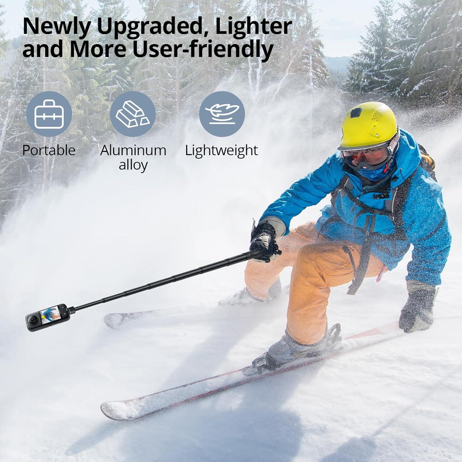 ATUMTEK 60″ Invisible Selfie Stick, 1/4″ Extendable Monopod Pole, Solid and Compact Design for Insta360, for GoPro, DJI, Action Cameras (Buckle Mount for GoPro & DJI and Wrist Strap Included)(130cm)
