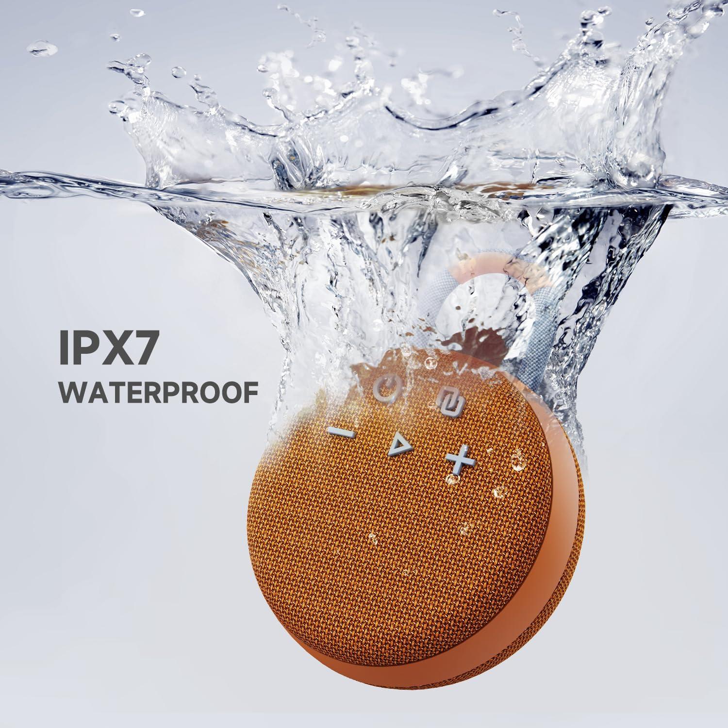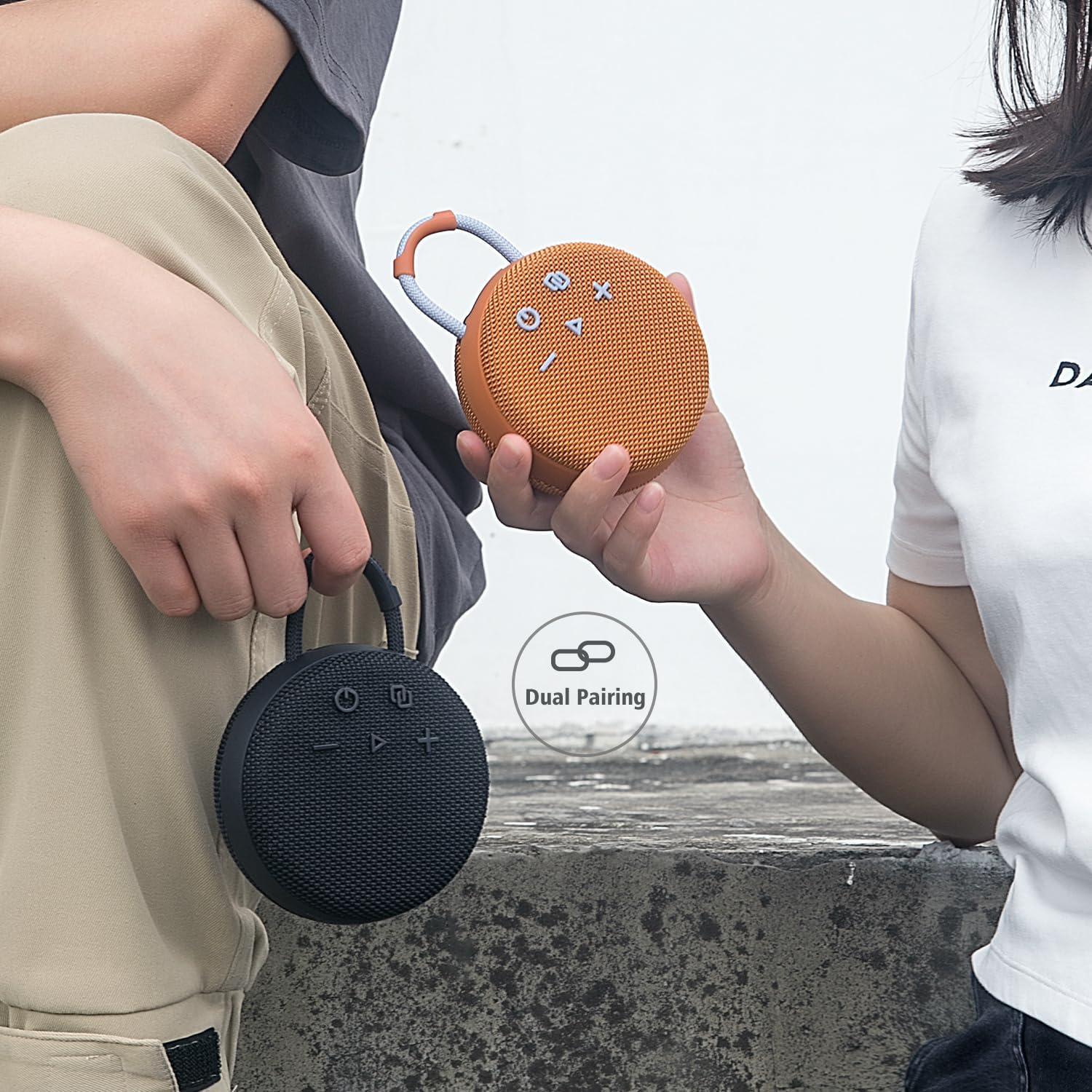 MusiBaby Mini Bluetooth Speaker – Bluetooth 5.3 with 6956C Chipset, IPX7 Waterproof, Rubberized Shell, Clip-On Lanyard, Ultra-Portable for Shower, Pool, Teens, Backpack, Gifts (Black)(Yellow)