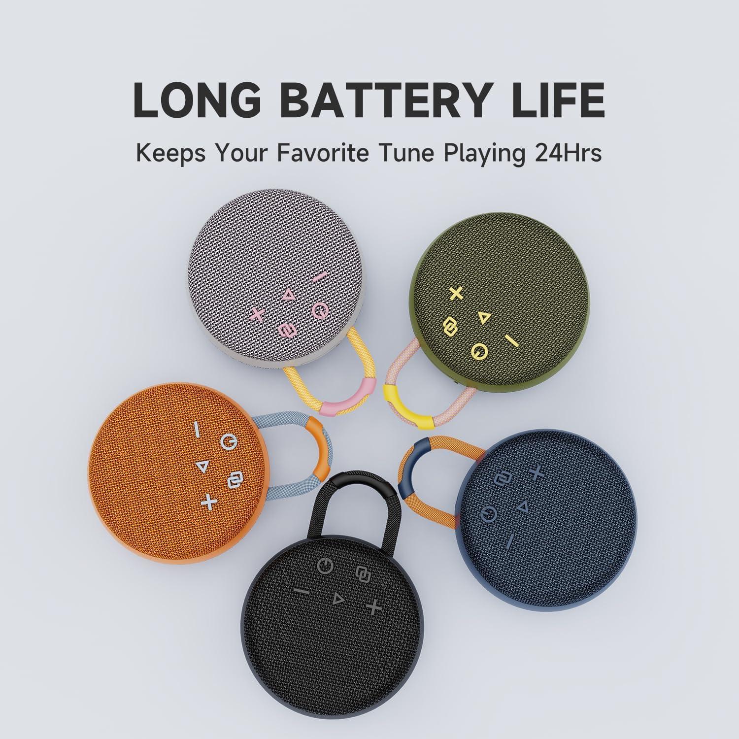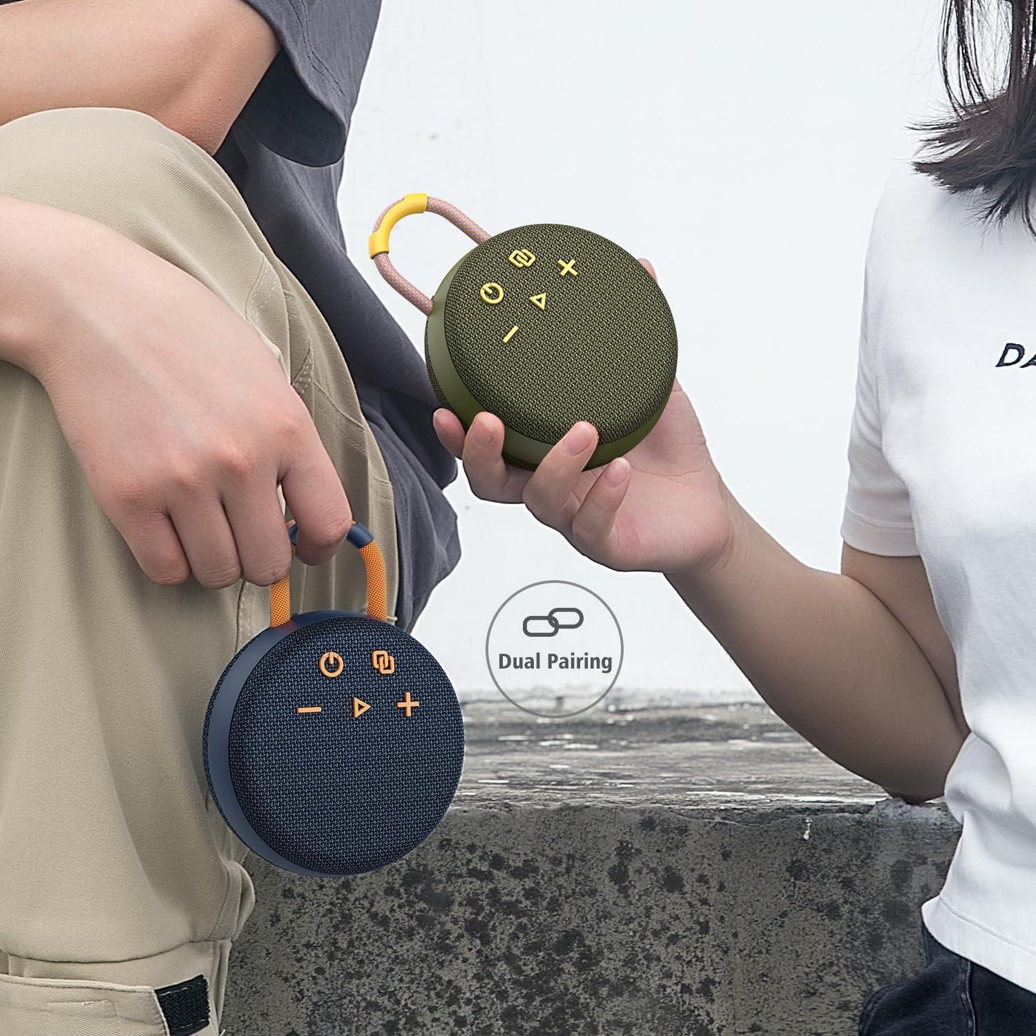 MusiBaby Mini Bluetooth Speaker – Bluetooth 5.3 with 6956C Chipset, IPX7 Waterproof, Rubberized Shell, Clip-On Lanyard, Ultra-Portable for Shower, Pool, Teens, Backpack, Gifts (Black)(dark green)