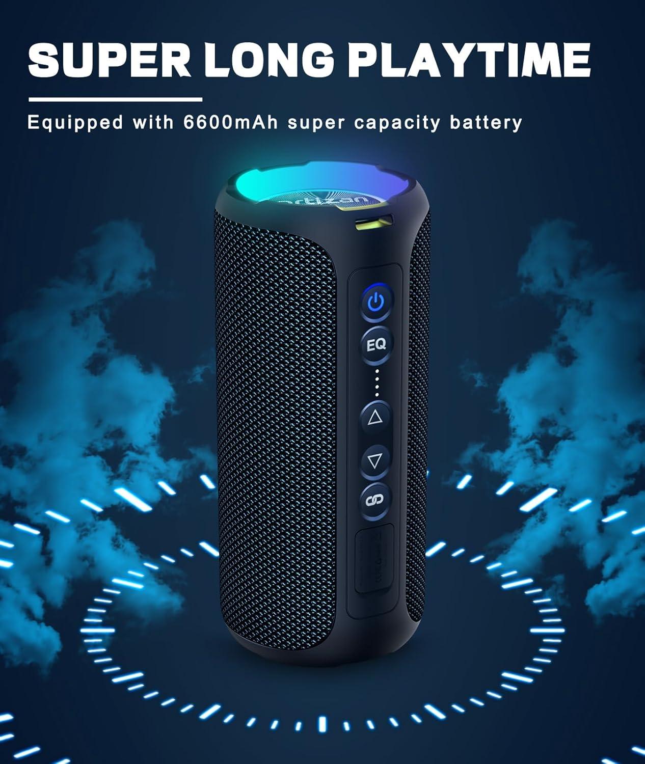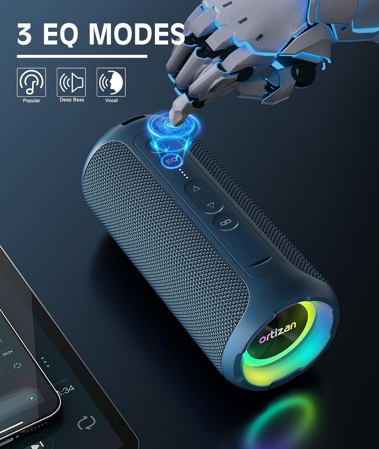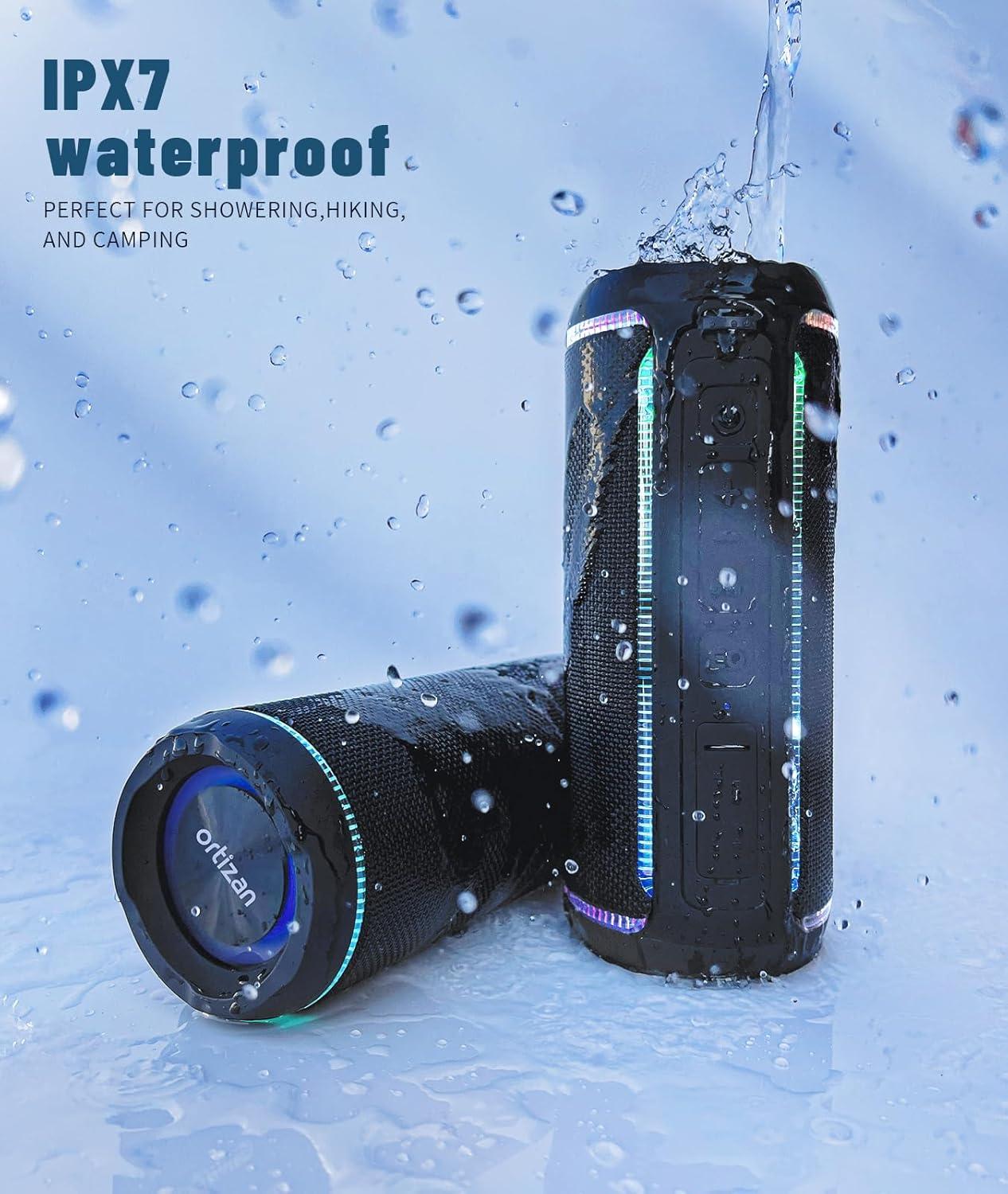 Ortizan Portable Bluetooth Speaker Loud, 80W Peak, Bass Up, 20H Playtime, IPX7 Waterproof, RGB Lights, Wireless Stereo Pairing, BT5.3, USB-C, Subwoofer Outdoor Speaker for Camping, Beach, Backyard(Black)