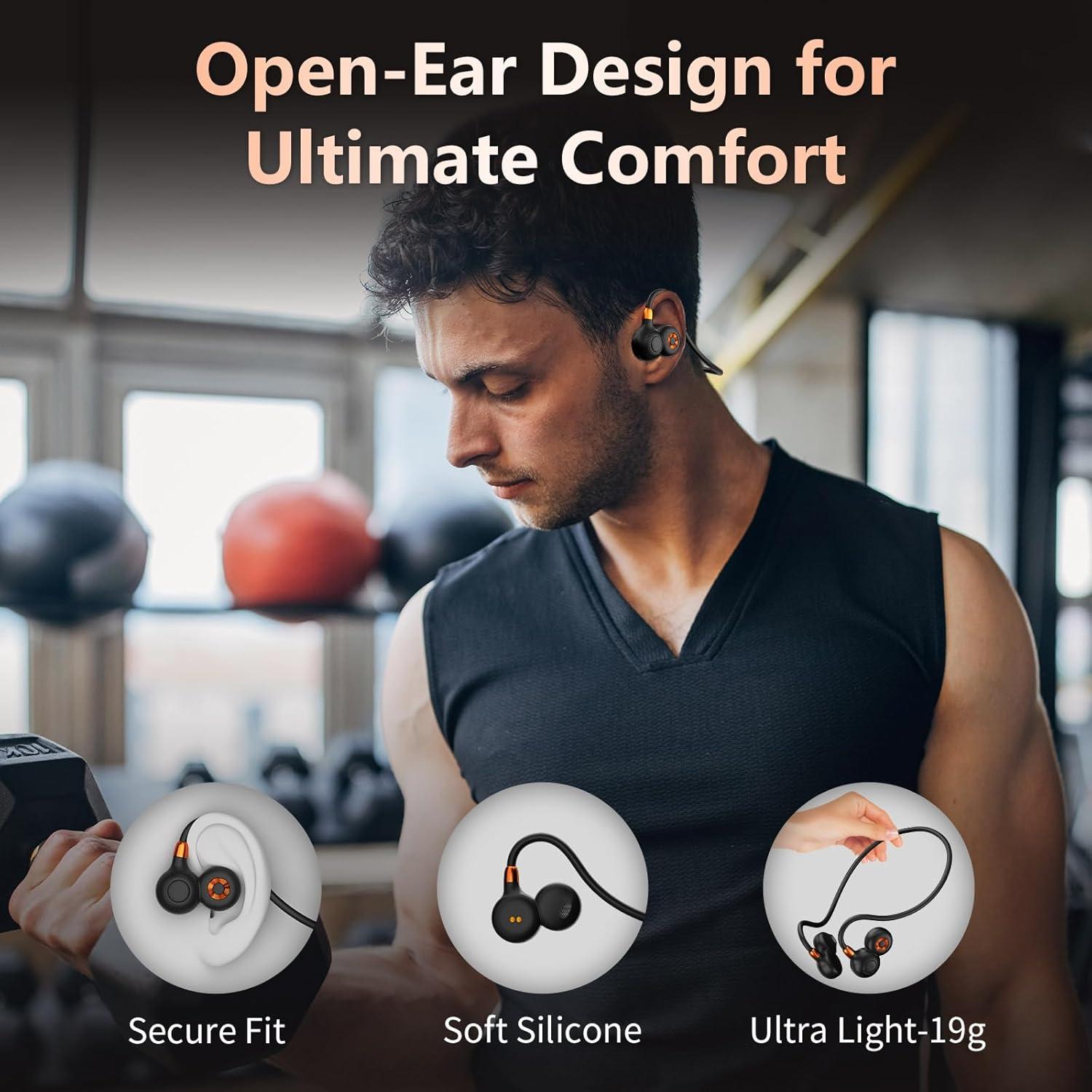 Ortizan Open Ear Headphones, Bluetooth 5.3 Wireless Air Conduction Headphones Sport Earbuds, Premium Sound, IPX6 Waterproof, Clear Call, 19g Lightweight Earphones for Running Cycling Workouts (Black)(Black)