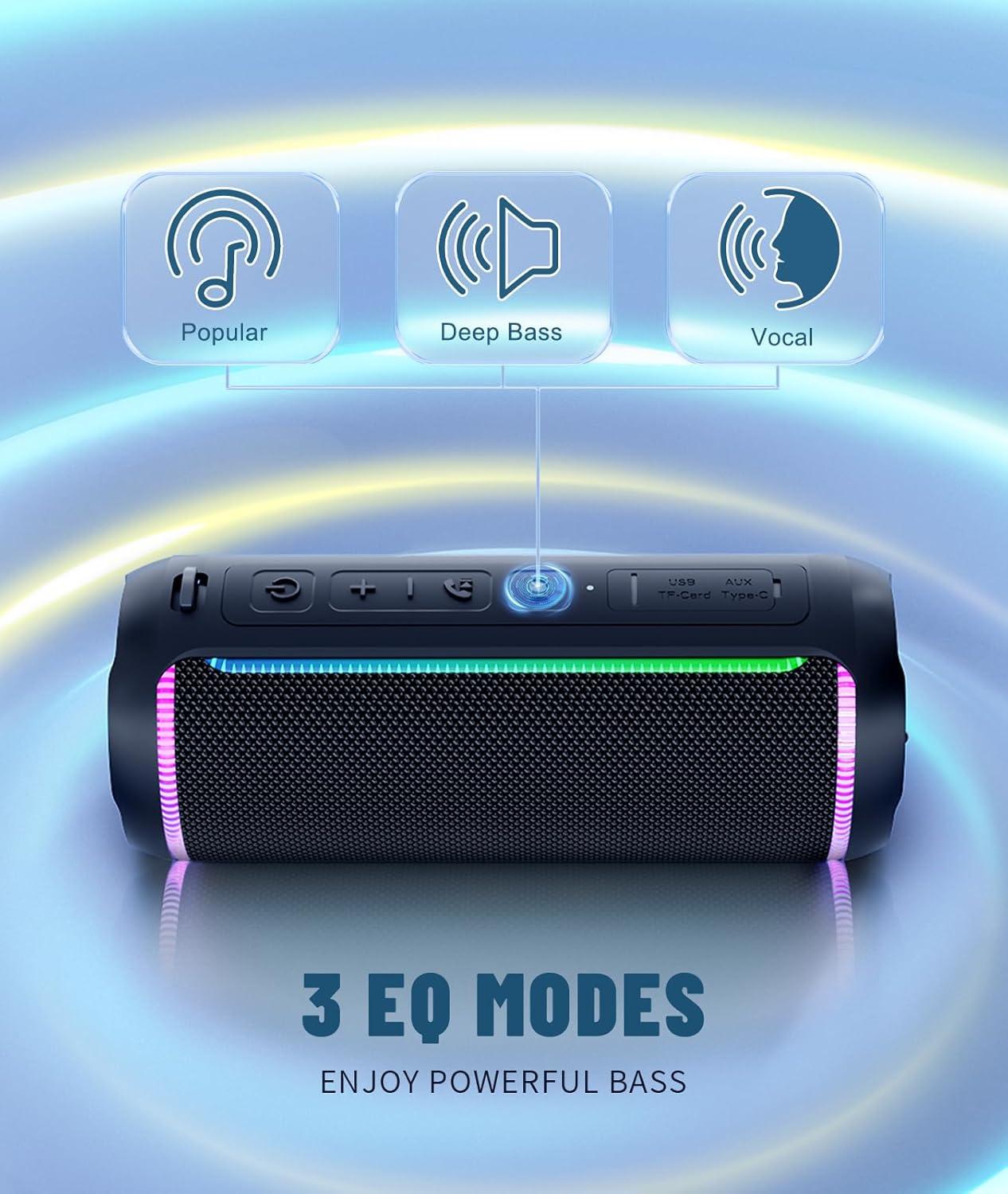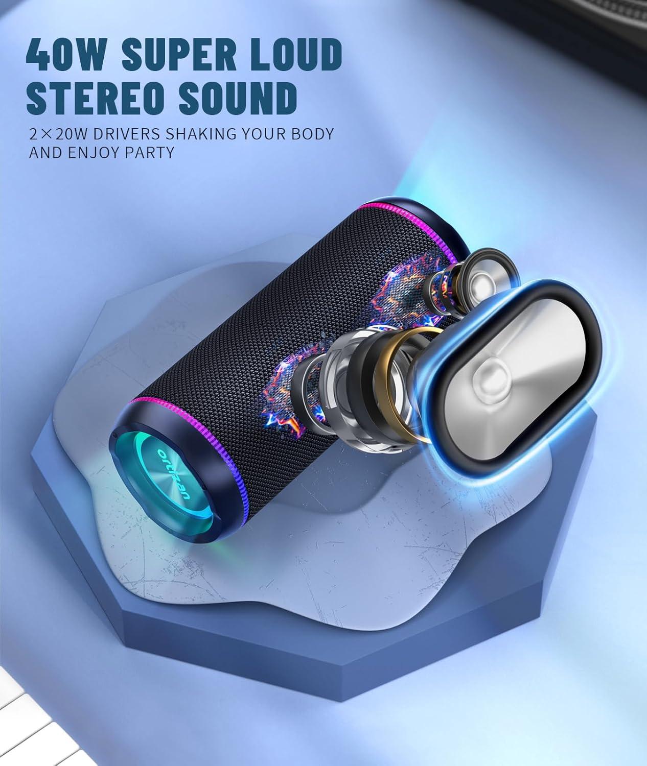 Ortizan Portable Bluetooth Speaker, 40W Loud Sound and Deep Bass, IPX7 Waterproof, True Wireless Stereo, Bluetooth 5.3, Colorful Flashing Lights, Preset EQ, USB Play, for Home, Outdoor, Party, Black(Black)