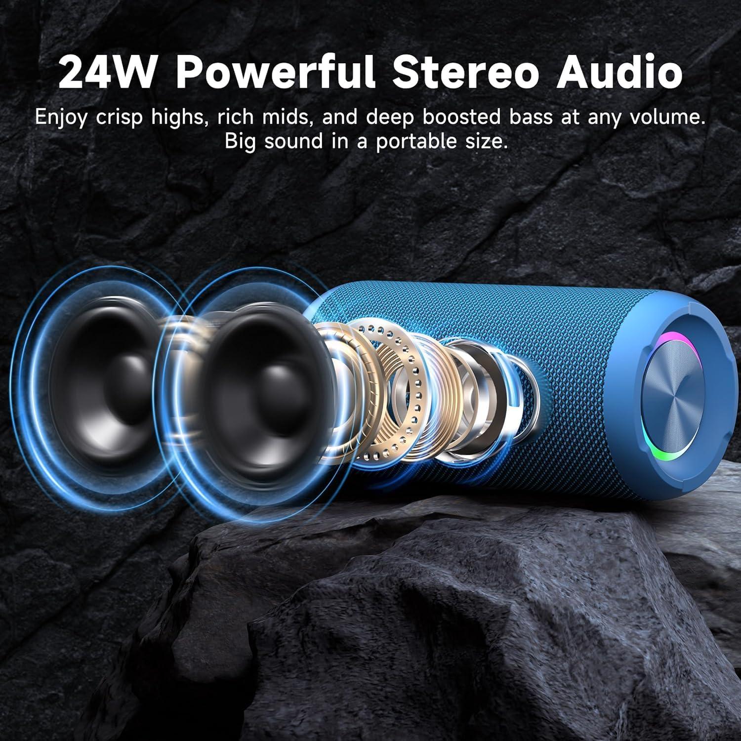 Ortizan Portable Bluetooth Speaker, IPX7 Waterproof Wireless Speaker with 24W Loud Stereo Sound, Outdoor Speakers with Bluetooth 5.0, 30H Playtime,66ft Bluetooth Range, Dual Pairing for Home(Blue)