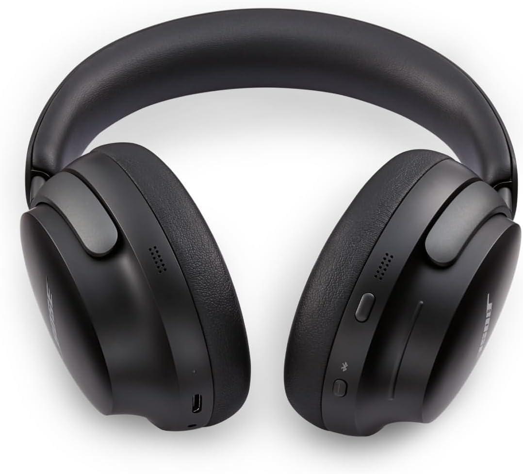 Bose QuietComfort Ultra Headphones take everything music makes you feel to new highs. The high-end headphones start with world-class noise cancellation that’s quieter than its predecessors. Breakthrough spatial audio headphones allow your music to feel more immersive than ever before. Bose Immersive Audio takes what you’re hearing out of your head and places it in front of you for the most natural listening experience, no matter the content or source. CustomTune technology upgrades sound even more by analyzing your ear’s shape and adapting the audio performance so everything you listen to hits exactly as it should. Noise cancelling headphones with mic feature a revolutionary system of mics that focus on your voice, allowing you to enjoy crystal clear phone calls. These noise cancelling over-the-ear headphones keep the session going with up to 24 hours of battery life (up to 18 hours with Immersive Audio) and unrivaled comfort from luxe materials. The earcups wrap your ears in a soft hug while the band spreads pressure evenly. The sleek metal arms add a statement of sophisticated design for ideal audiophile headphones. Sync sound between your QC Ultra Headphones and a Bose smart soundbar with SimpleSync technology. The headphones also feature Snapdragon Sound Certification for Android and quick pairing with Google Fast Pair. Connect these wireless Bluetooth noise cancelling headphones to your devices with advanced Bluetooth 5.3. Keep track of what you have paired in the Bose Music app. The app makes setup quick and easy, gives you access to Adjustable EQ settings and more.