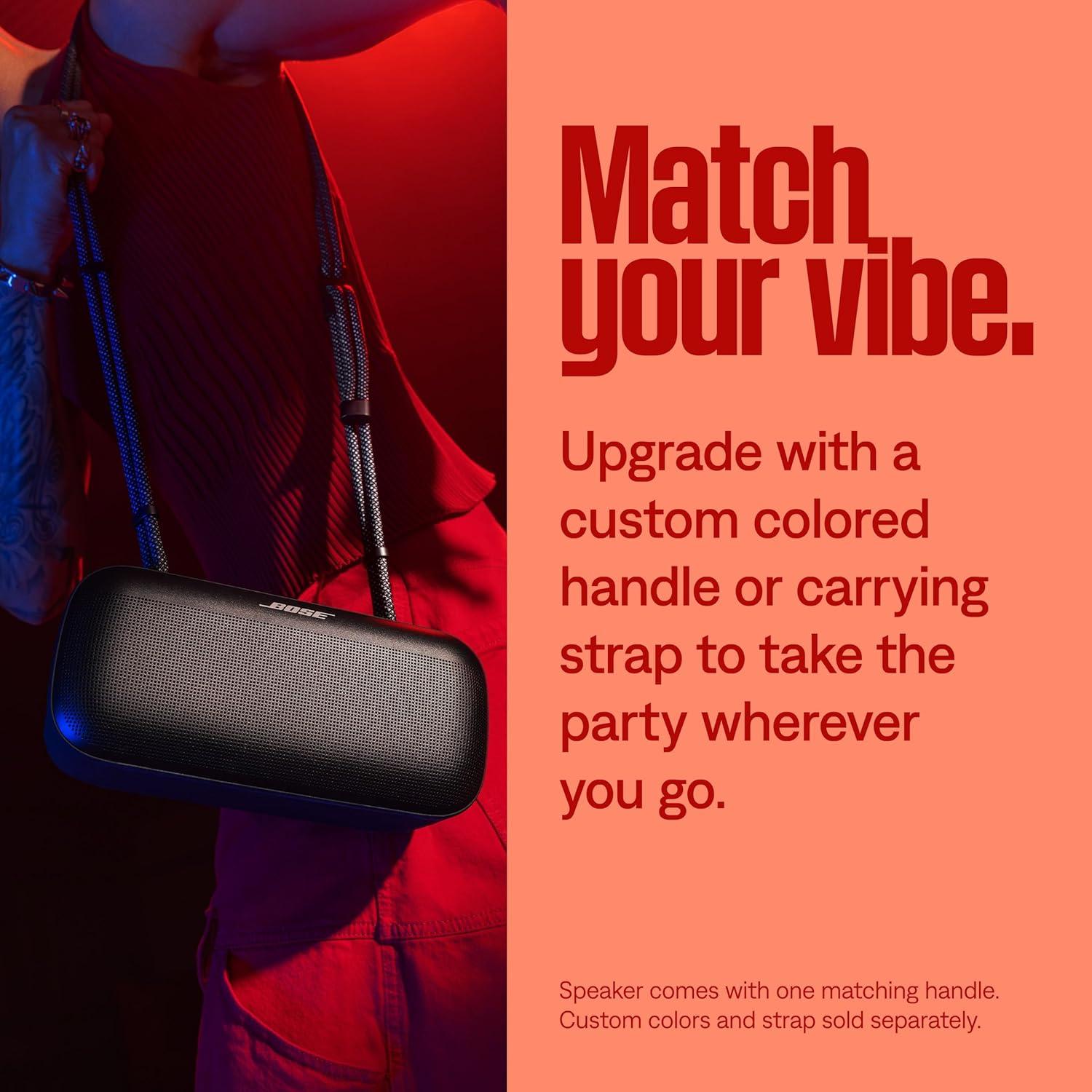 Bose SoundLink Max Bluetooth Portable Speaker combines big-speaker energy, grab-and-go convenience, and lasting power so you can turn up the vibe all day and night. Whether you’re the go-to DJ or a music lover with the best playlists, the Bose SoundLink Max Party Speaker is the ultimate party starter. With up to 20 hours of battery life*, this big Bluetooth speaker lets you listen even longer. It’s perfect for a poolside, beach, or rooftop hang since it doubles as an IP67 rated waterproof Bluetooth speaker and is dust-proof. Plus, the removable rope handle strap is super convenient for bringing the Bluetooth boombox anywhere. An optional shoulder rope carrying strap (sold separately) lets you carry the bluetooth speaker around while keeping your hands free. The USB-C port on the back of the large portable speaker lets you charge straight from the speaker’s built-in battery. This Bose portable speaker also includes an AUX input so you can connect any 3.5mm wired device to let the good tunes roll on. Stay connected with the Bose app to take full control of your Bluetooth speaker and adjust features like bass, mid-range, and treble levels, or use the app to check the speaker battery life or manage connected devices. Take the party to the max with the Bose SoundLink Max Bluetooth Speaker. *Using Bluetooth A2DP audio at 65% volume and between 68° F – 77° F (20° C – 25° C), with default EQ using a mix of Top 50 Global tracks as of October 2023 and no charging of external devices. Battery performance varies with individual user conditions such as audio content, loudness, and environmental temperature.