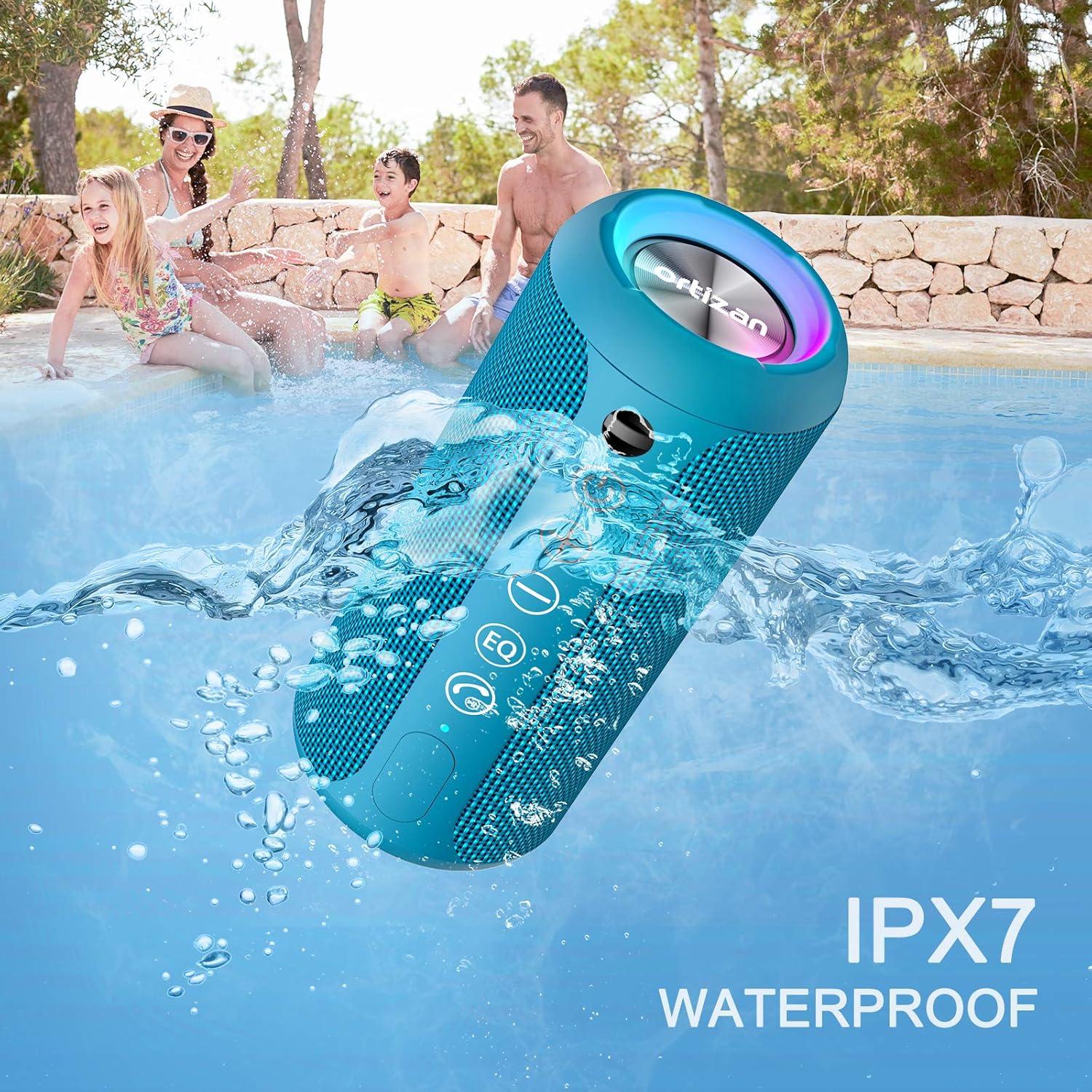 Ortizan Black & Blue Portable Bluetooth Speaker, IPX7 Waterproof Wireless Speaker with 24W Loud Stereo Sound, Outdoor Speakers with Bluetooth 5.0, 30H Playtime,66ft Bluetooth Range, Dual Pairing